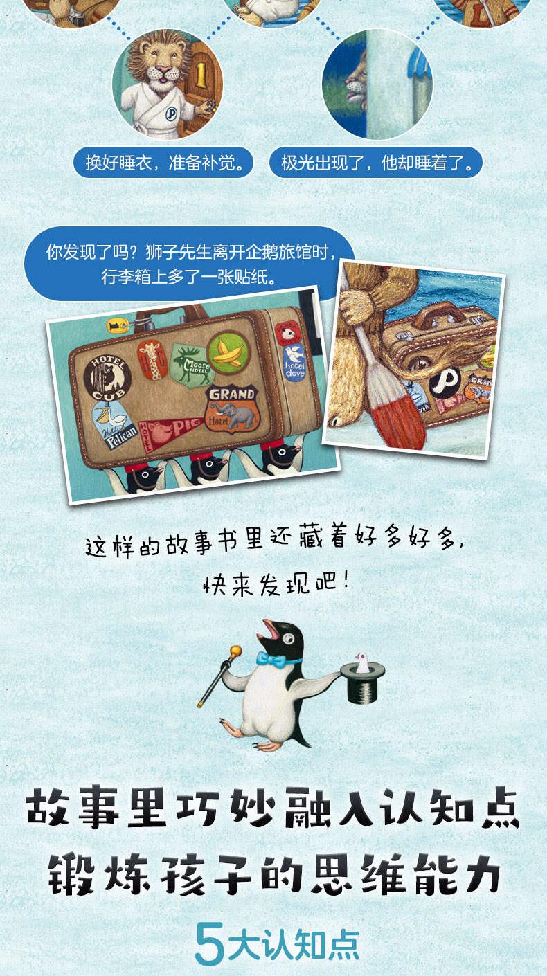 ——让人忍不住想抱一抱的可爱绘本,一秒俘获你的眼和心!滑溜溜的小企鹅、毛绒绒的大熊猫、鬃毛飘逸的狮子……可爱又不失真实,细致到每根毛发。