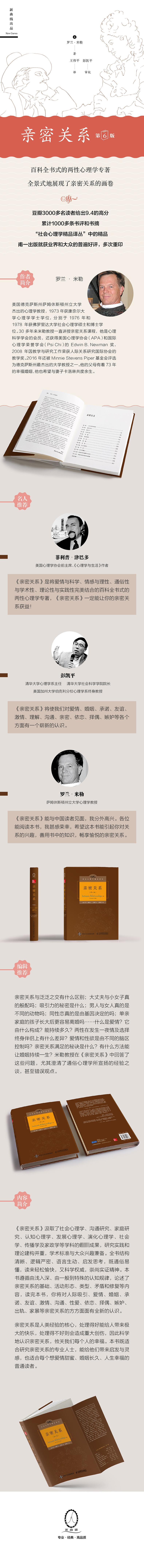 亲密关系与泛泛之交有什么区别;大丈夫与小女子真的般配吗;吸引力的秘密是什么;男人与女人真的是不同的动物吗;同性恋真的是由基因决定的吗;单亲家庭的孩子长大后更容易离婚吗……什么是爱情?它由什么构成?能持续多久?两性在发生一夜情及选择终身伴侣上有什么差异?爱情和性欲是由不同的脑区控制吗?亲密关系满足的秘诀是什么?有什么方法能让婚姻持续一生?米勒教授在《亲密关系(第6版)》中回答了这些问题,尤其澄清了通俗心理学所宣扬的经验之谈,甚至错误观点。