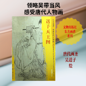 杨东胜主编,吴道子绘的《送子天王图/东方画谱》又名《释迦降生图》,是吴道子根据佛典《瑞应本起经》所绘佛诞画,画中的人物已经本土化。从中可见佛教自印度传入中国后,经汉末而至盛唐,逐渐与中国文化融合。全卷绘人物、鬼神、瑞兽二十多个,人物则天王威严,大臣端庄,夫人慈祥,侍女卑恭,鬼神张牙舞爪,瑞兽灵活飞动。独特的“吴家样”线描,粗细顿挫,随心流转,无论是表现人物的衣纹、鬼神的狰狞,还是描绘闪烁的火光,均