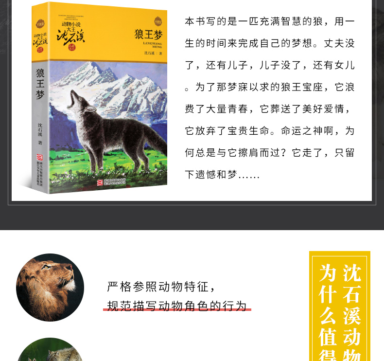 沈石溪著的《狼王梦》写的是一匹充满智慧的狼,用一生的时间来完成自己的梦想。丈夫没了,还有儿子,儿子没了,还有女儿。为了那梦寐以求的狼王宝座,它浪费了大量青春,它葬送了美好爱情,它放弃了宝贵生命。命运之神啊,为何总是与它擦肩而过?它走了,只留下无限遗憾和较为的梦……