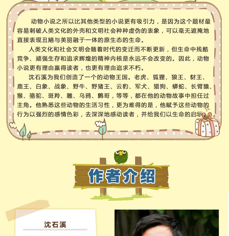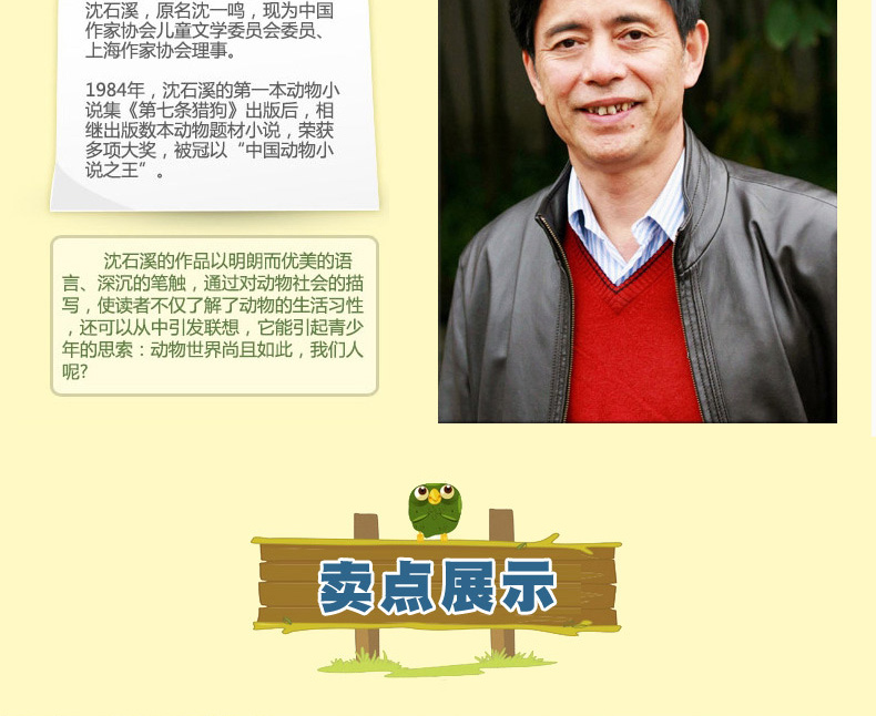 沈石溪著的《再被狐狸骗一次》介绍:动物小说之所以比其他类型的小说更有吸引力,是因为这个题材很容易刺破人类文化的外壳和文明社会种种虚伪的表象,可以毫无遮掩地直接表现出丑陋与美丽融于一体的原生态的生命。 人类文化和社会文明会随着时代的变迁而不断更新,但生命中残酷竞争、顽强生存和追求辉煌精神内核是永远不会改变的。因此,动物小说更有理由赢得读者,也更有理由追求不朽。