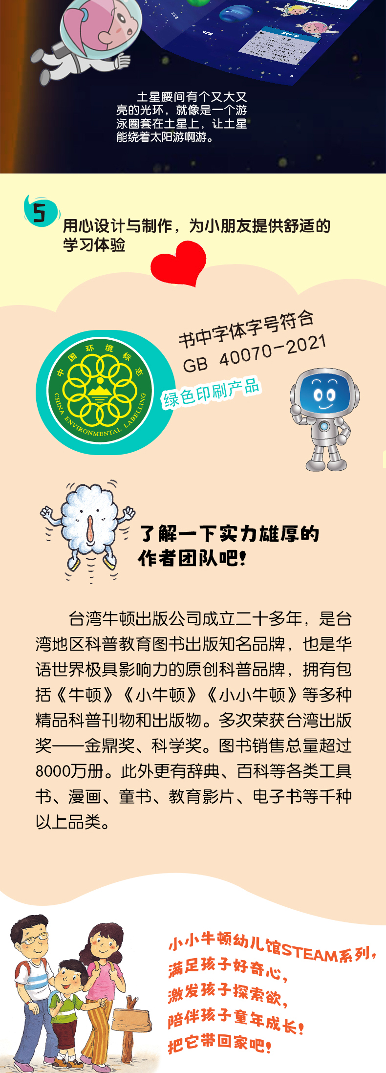 本套书是畅销华语世界的原创科普图书,三捧台湾出版优选奖——金鼎奖,在大陆地区也畅销多年,好评率99.9%,经历了市场的检验,获得了读者的认可,拥有良好的口碑。如今全新版本正式上线,更新、更丰富、更靠近学科的小小牛顿幼儿馆STEAM系列来啦! 1.引进版权,更新版本 “小牛顿”作为华语世界极具影响力的原创科普品牌,三度荣获台湾出版奖——金鼎奖,台湾地区累计发行超过2000万册!而此次全新的版本正