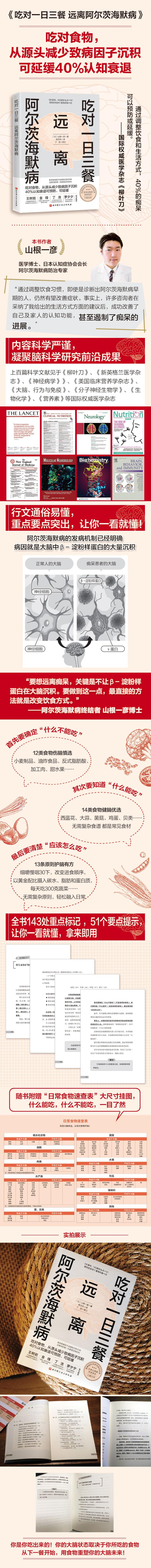 日本认知症协会会长、阿尔茨海默病专家亲授如何吃出不痴呆的大脑。 ·阿尔茨海默病的致病因子会提前沉积20年,这段潜伏期内,饮食选择正是逆转关键! ·一次讲清痴呆三大诱因,精准阻断致病因子在大脑沉积。 ·12类伤脑食物慎选,14类健脑食物优选,无需复杂食谱,都是日常食材。 ·13项饮食&烹饪原则护脑有方,无需复杂操作,轻松融入日常。